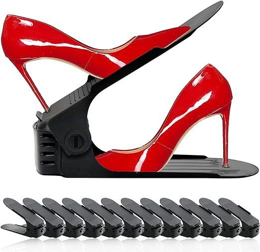 Smart, robust og pladsbesparende. Denne foldbare skohylde med dobbelt lag kan nemt justeres, så den passer til forskellige skohøjder. Den er lavet af 100% ny plastik, er holdbar, aftagelig og perfekt til at holde fodtøj organiseret i moderne hjem.