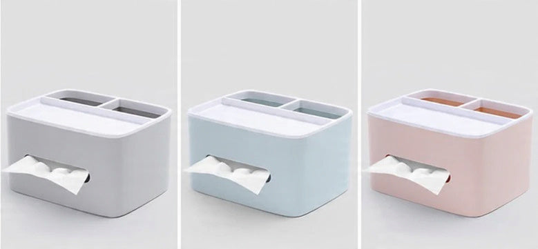 Hold dit skrivebord pænt og stilfuldt med denne multifunktionelle lommetørklædeæske og opbevaringsorganisator. Den holder lommetørklæder i midten, mens siderummene holder fjernbetjeninger, kuglepenne, makeup og daglige fornødenheder let tilgængelige. Med sit elegante, moderne design tilføjer den både orden og elegance til ethvert bord.